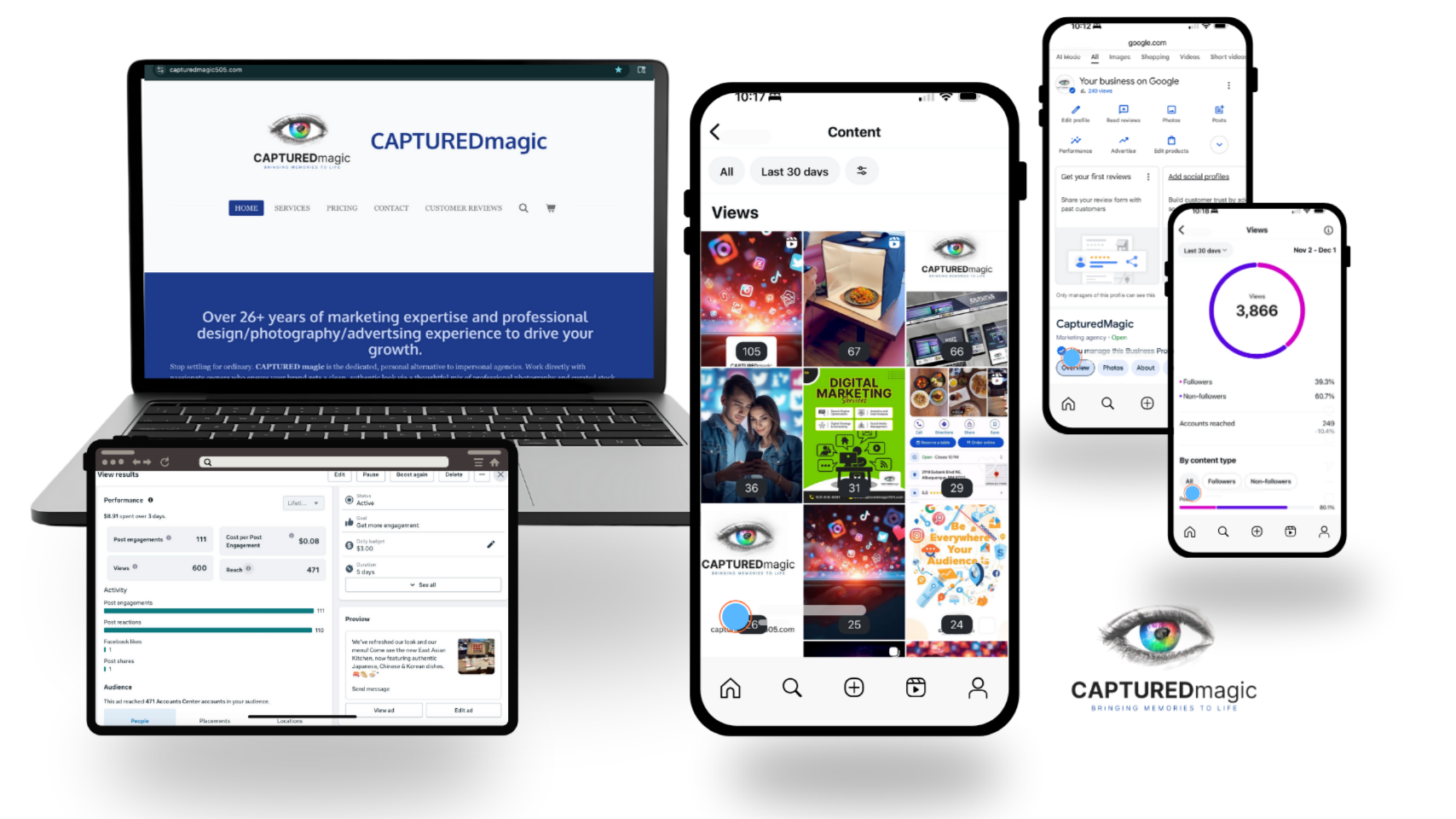 Maximize your reach and engagement with our expertly crafted social media services. CAPTURED magic helps you harness the power of social media to connect with your audience, build your brand, and drive conversions. Our team in Albuquerque, New Mexico, creates compelling content and strategies that deliver real results. Visit our Social Media pages at @Capturedmagic505